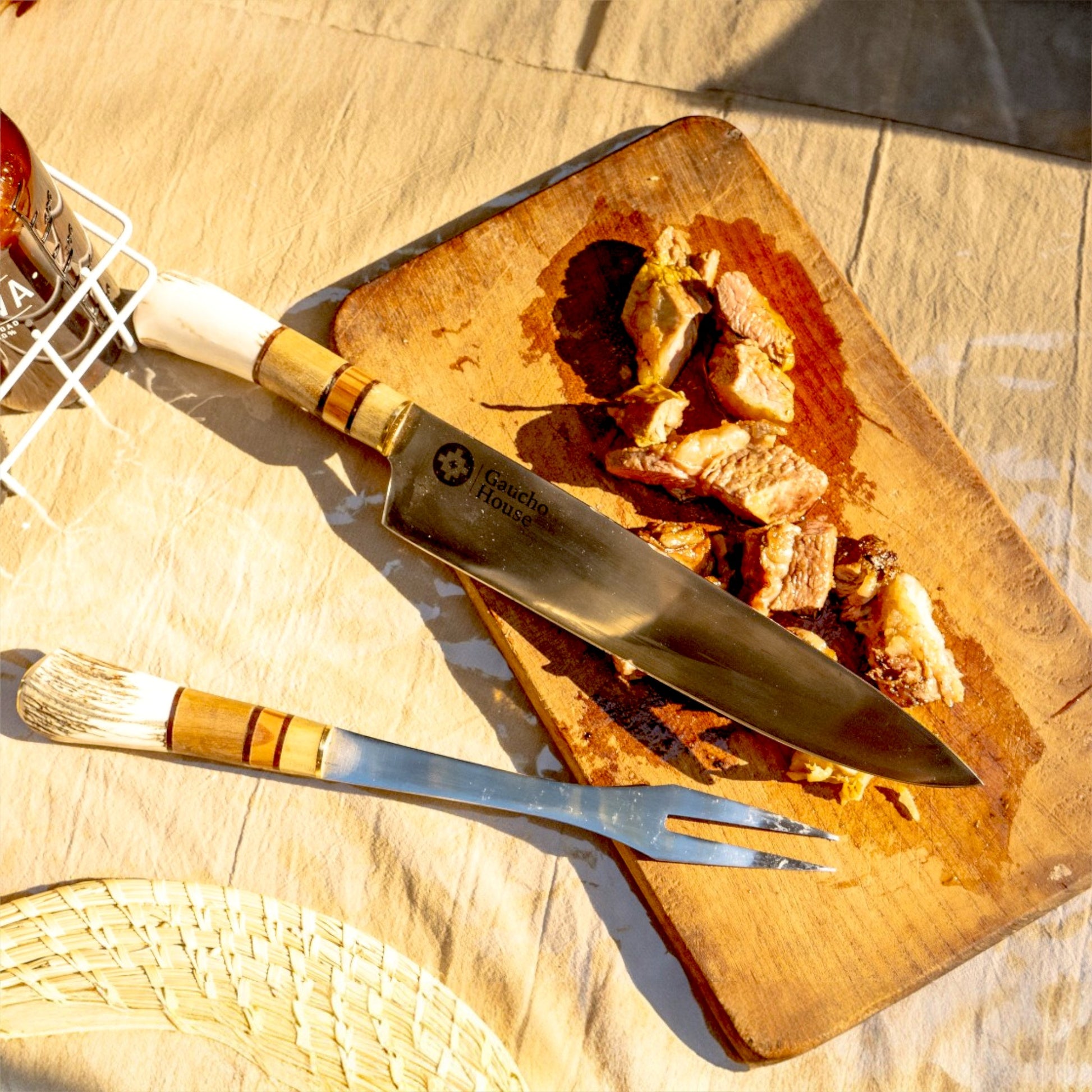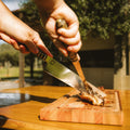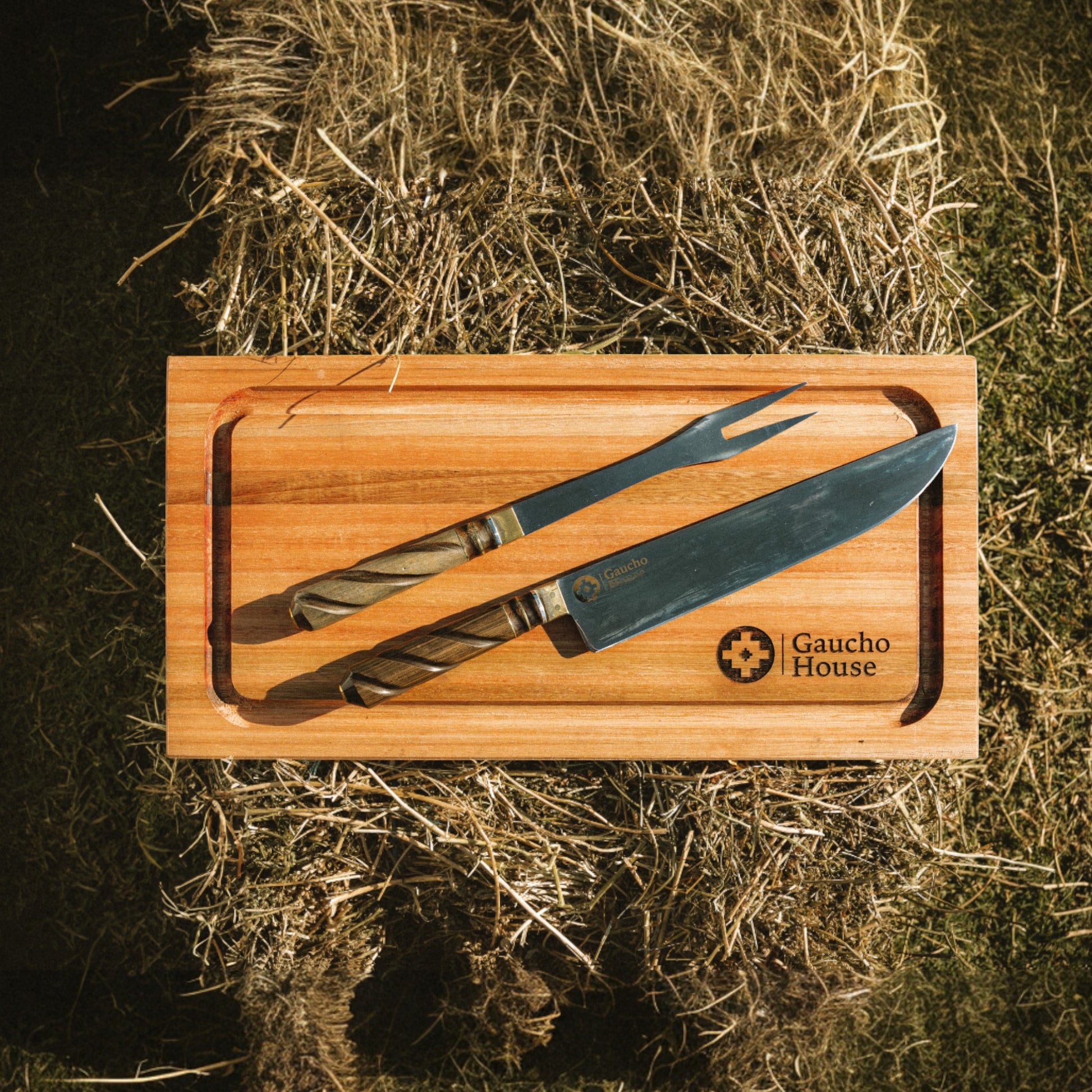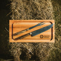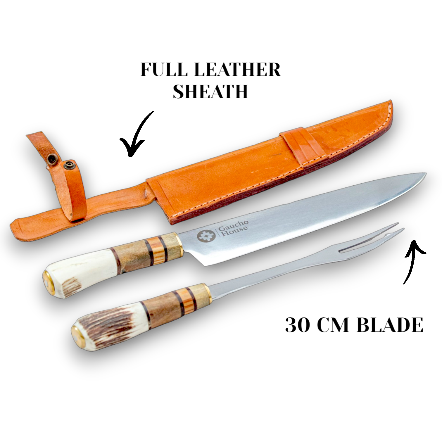 The ESTANCIERO GRILL SET is meticulously hand-forged by expert craftsmen, featuring full-tang blades crafted from stainless steel for exceptional edge retention, corrosion resistance, and structural integrity. The 30 cm stainless steel blade is precision-honed to deliver clean, accurate cuts—ideal for both culinary applications and rugged outdoor use, including traditional Argentine Asados. The set in both different types hints will come with a full leather sheath. The full length of set is more than 40 cm.