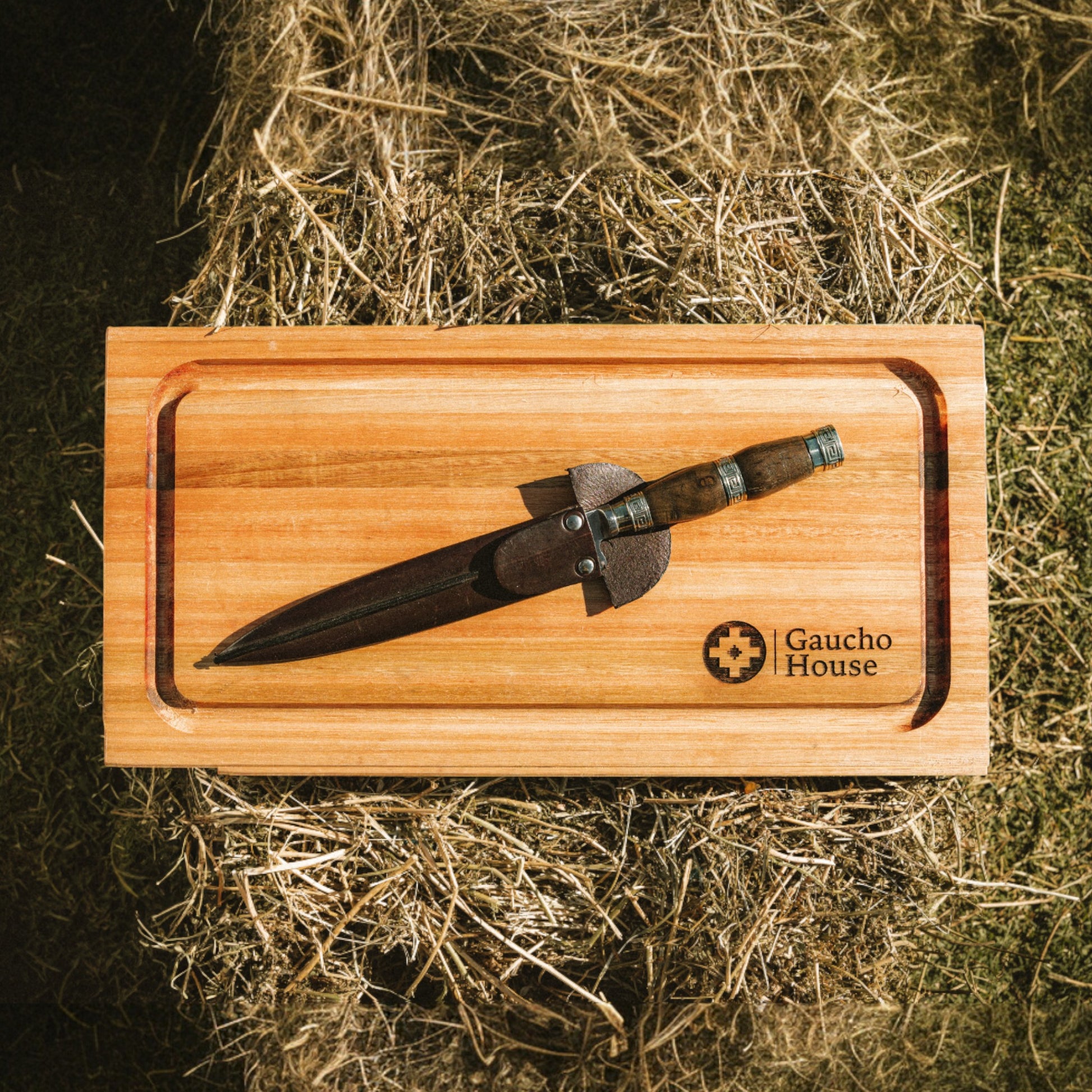 Elevate your asado or grill rituals with THE JUSTICIERO KNIFE, a masterfully carving knife that delivers justice to every cut. Forged for the modern man, its 20 cm surgical-grade stainless-steel blade slices through meat, and ribs with great precision—no tearing, no fuss. Althought cuts meat greatly, it comes with a super detailed and handcrafted hint that has Guayubira hardwood and Alpaca finishes, also called as German silver. From backyard barbecues to professional parrillas, this knife is the crowning jewel of any serious Asador’s toolkit. This functional and aesthethic knife has a full size of 32 cm. All Guacho House knives come in a full leather sheath.