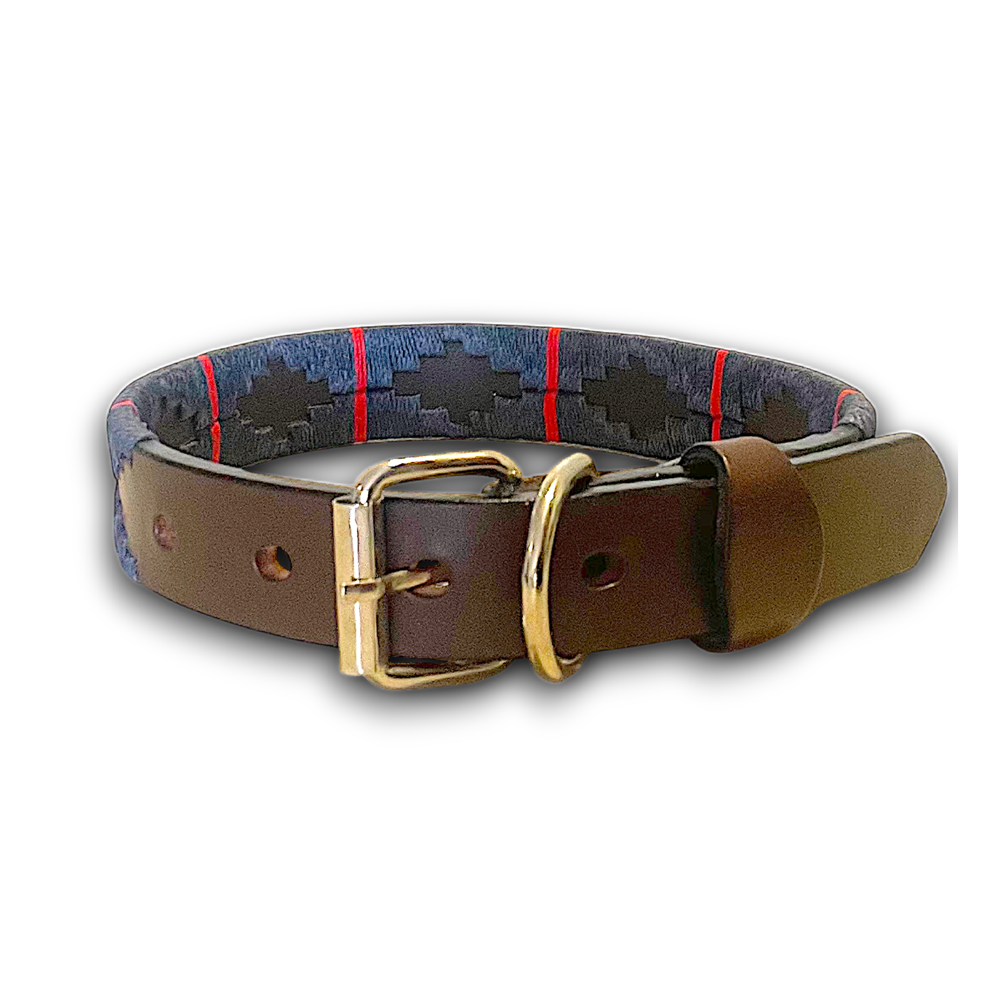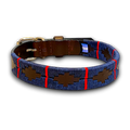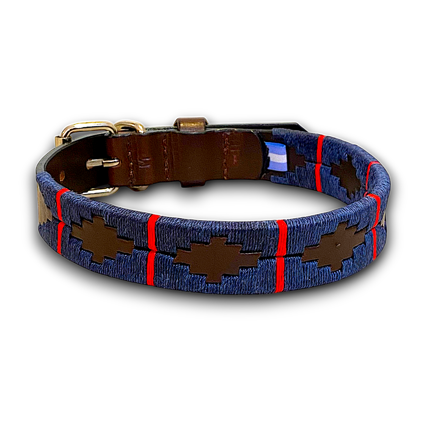 The Oceano Dog Collar is a Collar impeccably crafted with a striking navy and red design, this collar adds a touch of style to your furry friend's wardrobe. Handmade and embroidered