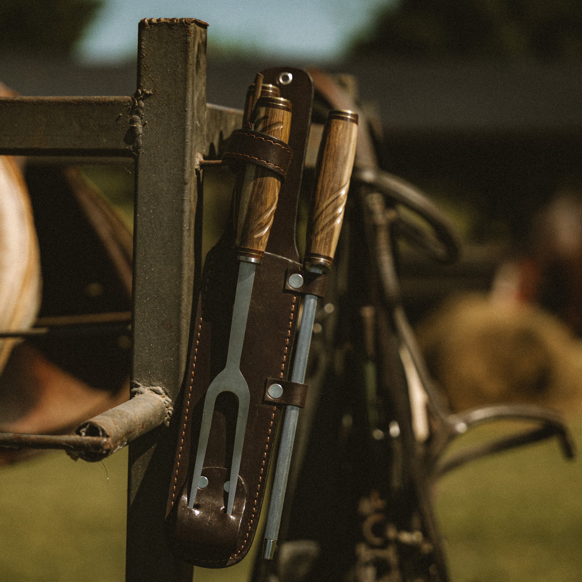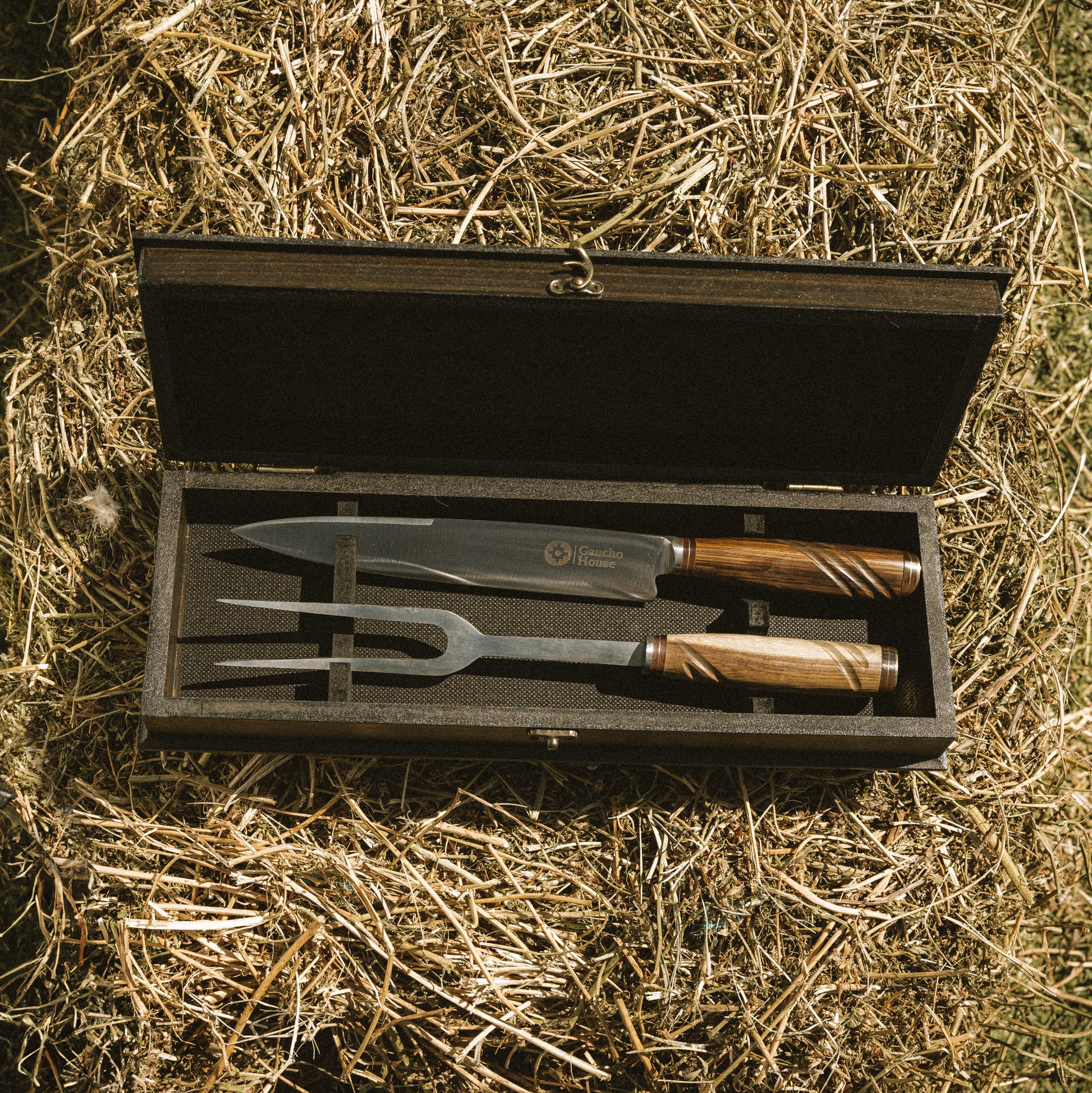 Presented in a full leather sheath, this Gaucho House set is both practical and timeless—an ideal gift for lovers of authentic grilling traditions. Wooden box not included.