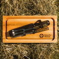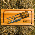 Handcrafted with tradition and precision, this 3-piece Gaucho grill set includes a knife, fork, and sharpener—essential tools for any barbecue enthusiast. Each piece is fitted with a rounded Guayubirá hardwood handle, polished to highlight its natural grain.